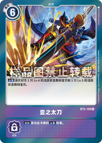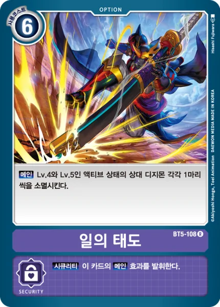 Main Delete 1 of your opponent's unsuspended level 4 Digimon and 1 of your opponent's unsuspended level 5 Digimon.