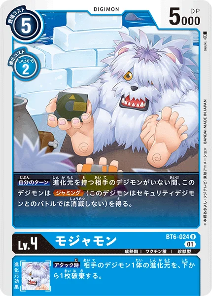 Your Turn While your opponent has no Digimon with digivolution cards in play, this Digimon gains Jamming. (This Digimon can't be deleted in battles against Security Digimon.)