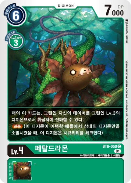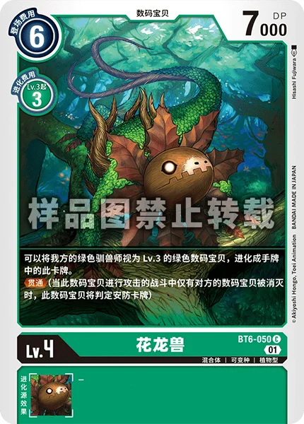 You may digivolve this card from your hand onto one of your green Tamers as if the Tamer is a level 3 Digimon.Piercing (When this Digimon attacks and deletes an opponent's Digimon and survives the battle, it performs any security checks it normally would.)