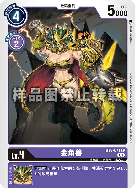 When Attacking You may trash 1 card in your hand to delete 1 of your opponent's level 3 Digimon.