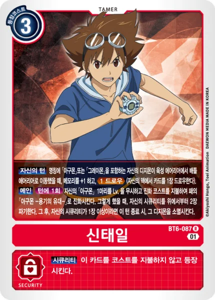 Your Turn When one of your Digimon with [Agumon] or [Greymon] in its name moves from the breeding area to the battle area, trigger Draw 1 (Draw 1 card from your deck) and gain 1 memoryMainOnce Per Turn Digivolve your [Agumon] into 1 [Agumon - Bond of Bravery] in your hand for its digivolution cost, ignoring its level. If you do, trash the top 2 cards of your security stack. Then, if you have 1 or more security cards, delete that Digimon at the end of the turn.