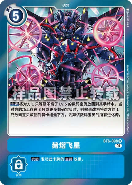 Main Return 1 of your opponent's level 5 or lower Digimon to its owner's hand. If your opponent has 3 or more Digimon in play, return 1 of your opponent's Digimon to the bottom of its owner's deck instead. Trash all of the digivolution cards of that Digimon.