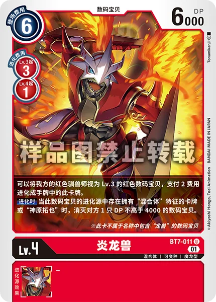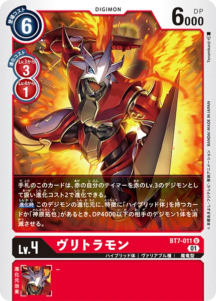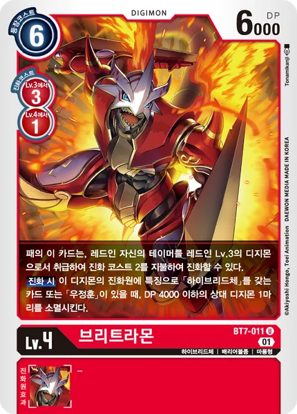 You may digivolve this card from your hand onto one of your red Tamers as if the Tamer is a level 3 red Digimon for a memory cost of 2. When Digivolving If a card with [Hybrid] in its traits or [Takuya Kanbara] is in this Digimon's digivolution cards, delete 1 of your opponent's Digimon with 4000 DP or less.