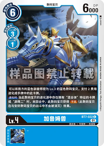 You may digivolve this card from your hand onto one of your blue Tamers as if the Tamer is a level 3 blue Digimon for a memory cost of 2. When Digivolving If a card with [Hybrid] in its traits or [Koji Minamoto] is in this Digimon's digivolution cards, this Digimon gains Jamming for the turn. (This Digimon can't be deleted in battles against Security Digimon.)