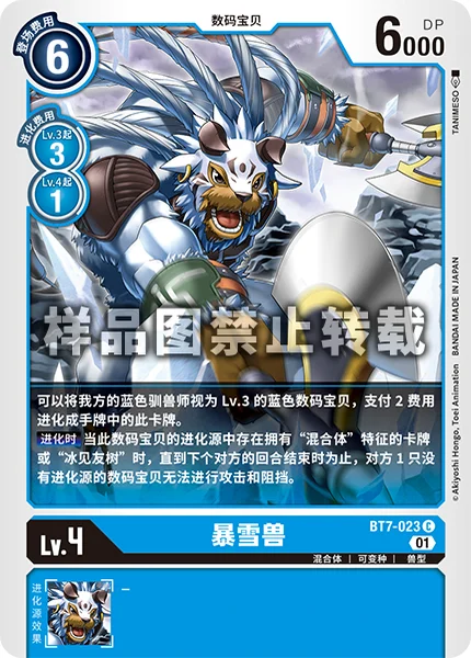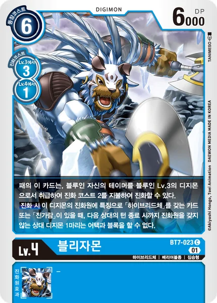 You may digivolve this card from your hand onto one of your blue Tamers as if the Tamer is a level 3 blue Digimon for a memory cost of 2. When Digivolving If a card with [Hybrid] in its traits or [Tommy Himi] is in this Digimon's digivolution cards, 1 of your opponent's Digimon with no digivolution cards can't attack or block until the end of their next turn.