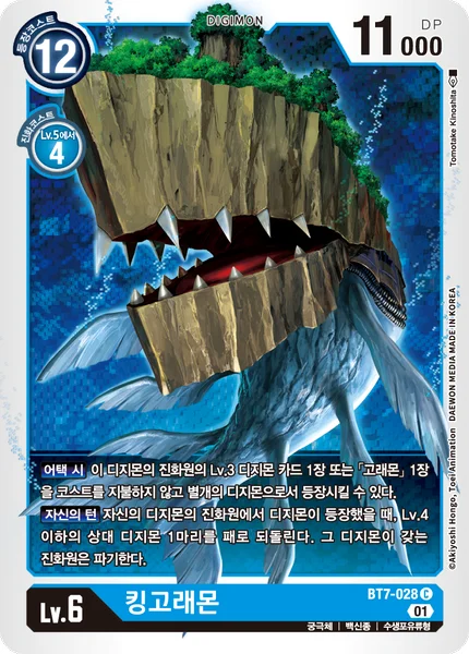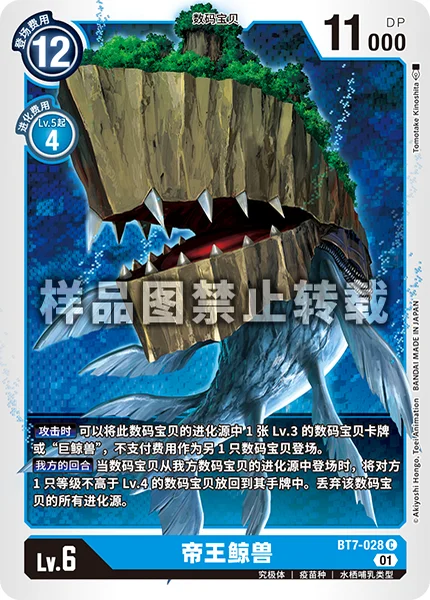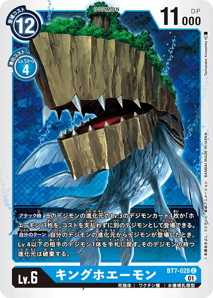 When Attacking You may play 1 level 3 Digimon card or 1 [Whamon] from this Digimon's digivolution cards as another Digimon without paying its memory cost. Your Turn When you play a Digimon from one of your Digimon's digivolution cards, return 1 of your opponent's level 4 or lower Digimon to its owner's hand. Trash all of the digivolution cards of that Digimon.