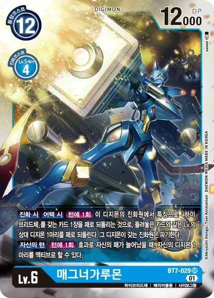 When DigivolvingWhen AttackingOnce Per Turn You may return 1 card with [Hybrid] in its traits from this Digimon's digivolution cards to your hand to return 1 of your opponent's Digimon with the same level as the returned card to its owner's hand. Trash all of the digivolution cards of that Digimon. Your TurnOnce Per Turn When an effect adds a card to your hand, you may unsuspend 1 of your Digimon.