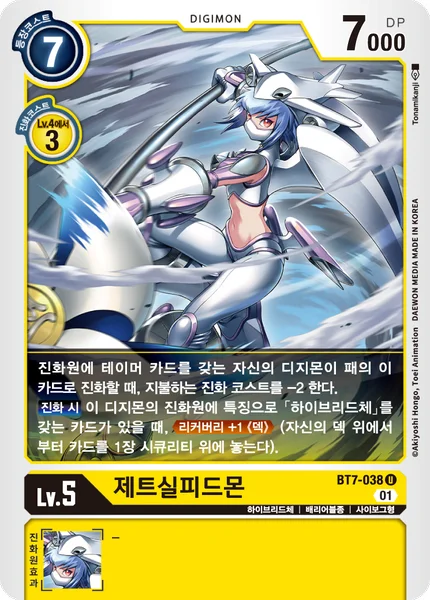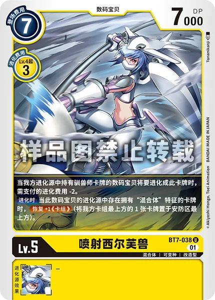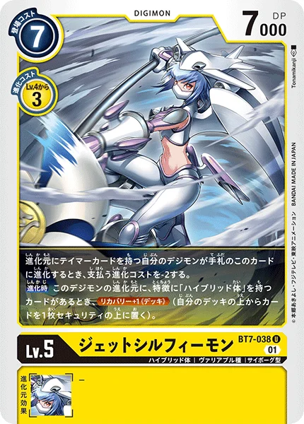 When one of your Digimon with a Tamer card in its digivolution cards digivolves into this card in your hand, reduce the memory cost of the digivolution by 2. When Digivolving If a card with [Hybrid] in its traits is in this Digimon's digivolution cards, Recovery +1 (Deck). (Place the top card of your deck on top of your security stack.)