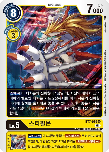 When Digivolving If this Digimon has 1 digivolution card, you may place up to 2 level 4 or lower yellow Digimon cards from your hand at the bottom of this Digimon's digivolution cards in any order. Then, Draw 1 for each Digimon card you placed. (Draw 1 card from your deck.)