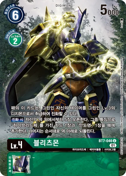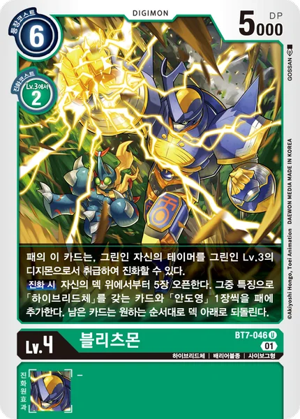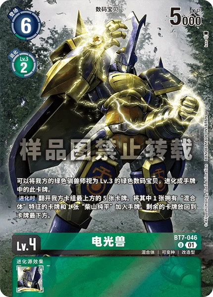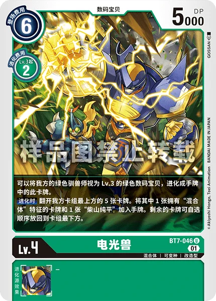 You may digivolve this card from your hand onto one of your green Tamers as if the Tamer is a level 3 green Digimon. When Digivolving Reveal the top 5 cards of your deck. Add 1 card with [Hybrid] in its traits and 1 [J.P. Shibayama] among them to your hand. Place the remaining cards at the bottom of your deck in any order.