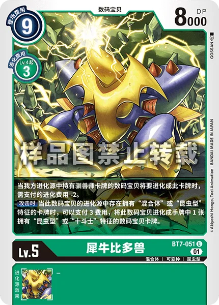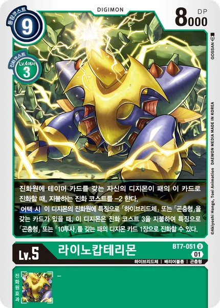 When one of your Digimon with a Tamer card in its digivolution cards digivolves into this card in your hand, reduce the memory cost of the digivolution by 2. When Attacking If a card with [Hybrid] or [Insectoid] in its traits is in this Digimon's digivolution cards, this Digimon can digivolve into a Digimon card with [Insectoid] or [Ten Warriors] in its traits in your hand for a memory cost of 3.