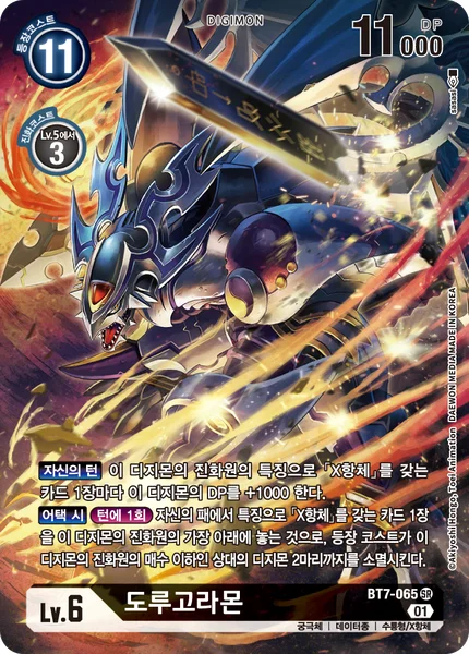 Your Turn For each card with [X Antibody] in its traits in this Digimon's digivolution cards, this Digimon gets +1000 DP. When AttackingOnce Per Turn You may place 1 card with [X Antibody] in its traits from your hand at the bottom of this Digimon's digivolution cards to delete up to 2 of your opponent's Digimon with play costs less than or equal to this Digimon's digivolution cards.
