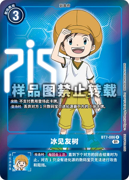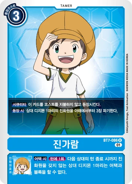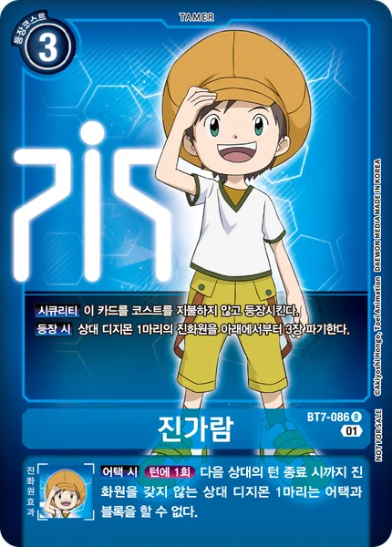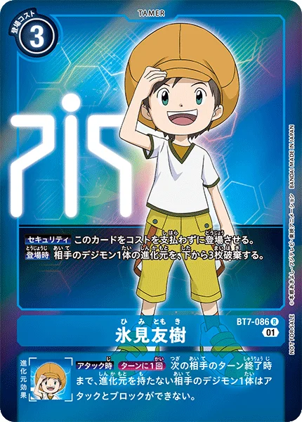 Some Digimon cards can digivolve onto Tamers. Digivolve such a Digimon onto this card, and it will become part of that Digimon's digivolution cards, allowing you to activate this card's inherited effect.
