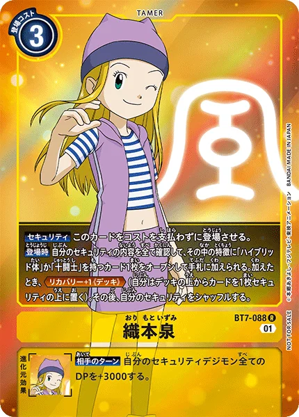 Security Play this card without paying its memory cost. On Play You may search your security stack for 1 card with [Hybrid] or [Ten Warriors] in its traits, reveal it, and add it to your hand. If you added a card to your hand, Recovery +1 (Deck). (Place the top card of your deck on top of your security stack.) Then, shuffle your security stack.