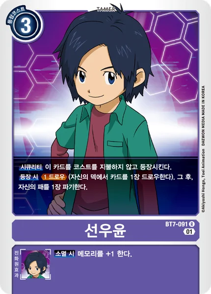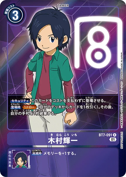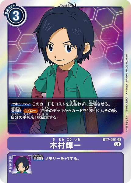 Some Digimon cards can digivolve onto Tamers. Digivolve such a Digimon onto this card, and it will become part of that Digimon's digivolution cards, allowing you to activate this card's inherited effect.