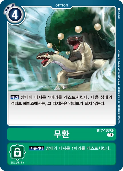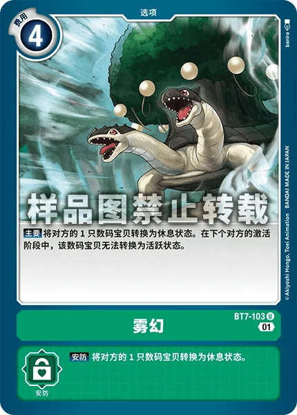Main Suspend 1 of your opponent's Digimon. That Digimon doesn't unsuspend during your opponent's next unsuspend phase.
