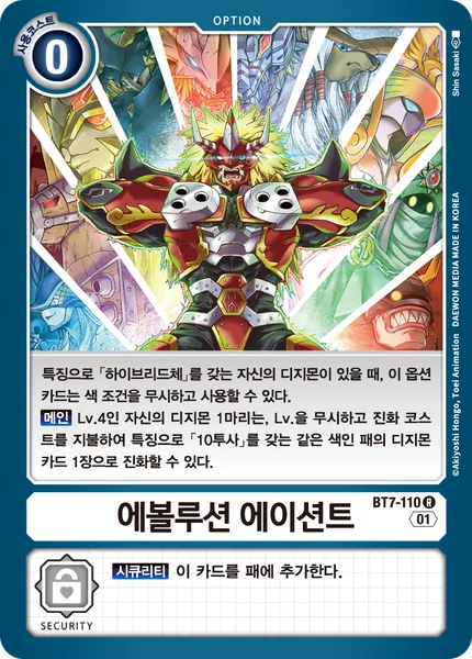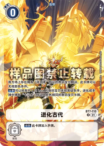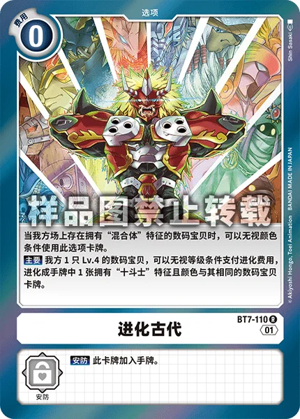If you have a Digimon with [Hybrid] in its traits in play, you may use this Option card without meeting its color requirements. Main Your level 4 Digimon can digivolve into 1 Digimon card in your hand with matching colors and [Ten Warriors] in its traits for its digivolution cost, ignoring its level.