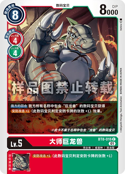Your Turn All of your Digimon with [Tyrannomon] in their names gain Security Attack +1. (This Digimon checks 1 additional security card.)