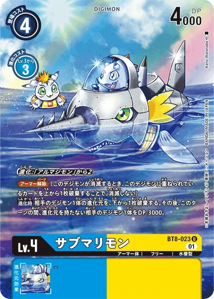 Digivolve 2 from [Armadillomon]Armor Purge (When this Digimon would be deleted, you may trash the top card of this Digimon to prevent that deletion.)When Digivolving Trash the bottom digivolution card of 1 of your opponent's Digimon. Then, 1 of your opponent's Digimon with no digivolution cards gets -3000 DP for the turn.