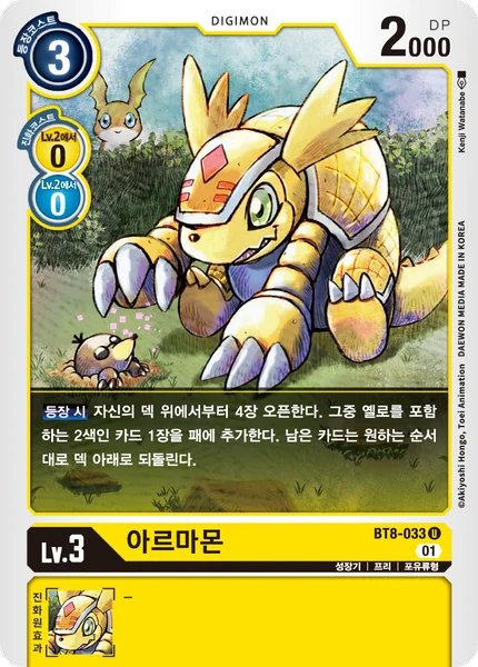 On Play Reveal the top 4 cards of your deck. Add 1 2-color yellow card among them to your hand. Place the remaining cards at the bottom of your deck in any order.