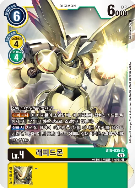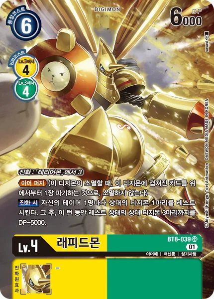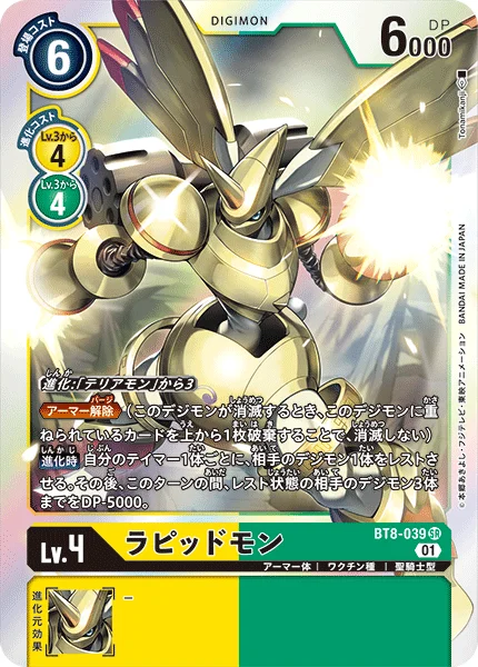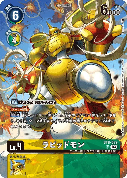 Digivolve 3 from [Terriermon]Armor Purge (When this Digimon would be deleted, you may trash the top card of this Digimon to prevent that deletion.)When Digivolving Suspend 1 of your opponent's Digimon for each Tamer you have in play. Then, up to 3 of your opponent's suspended Digimon get -5000 DP for the turn.