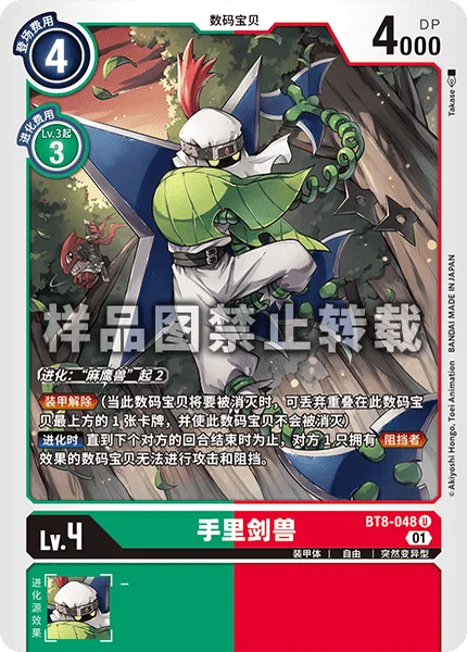 Digivolve 2 from [Hawkmon]Armor Purge (When this Digimon would be deleted, you may trash the top card of this Digimon to prevent that deletion.)When Digivolving 1 of your opponent's Digimon with Blocker can't attack or block until the end of your opponent's next turn.