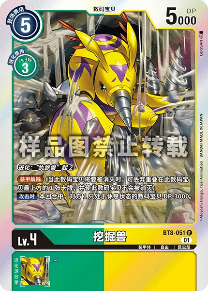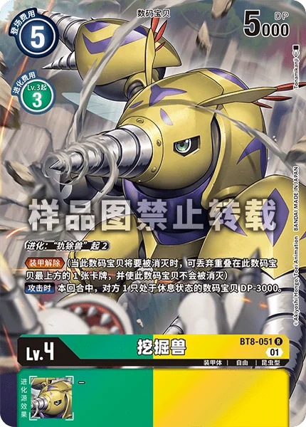 Digivolve 2 from [Armadillomon]Armor Purge (When this Digimon would be deleted, you may trash the top card of this Digimon to prevent that deletion.)When Attacking 1 of your opponent's suspended Digimon gets -3000 DP for the turn.