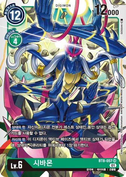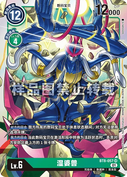 Opponent's Turn While all of your Digimon are suspended, your opponent can't use Option cards.Your Turn When this Digimon becomes unsuspended during your unsuspend phase, trash the top card of your opponent's security stack.