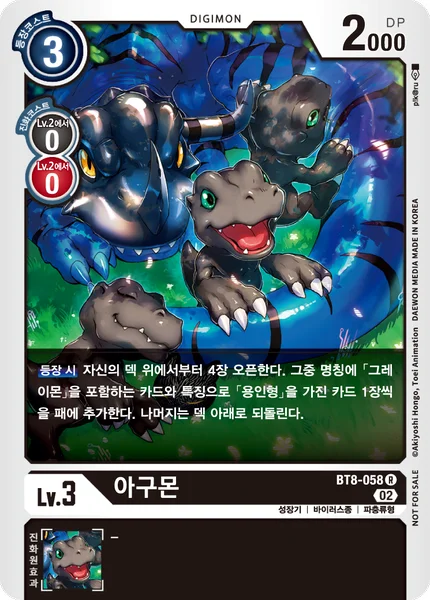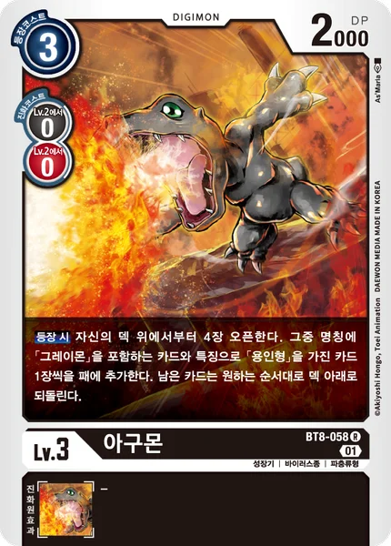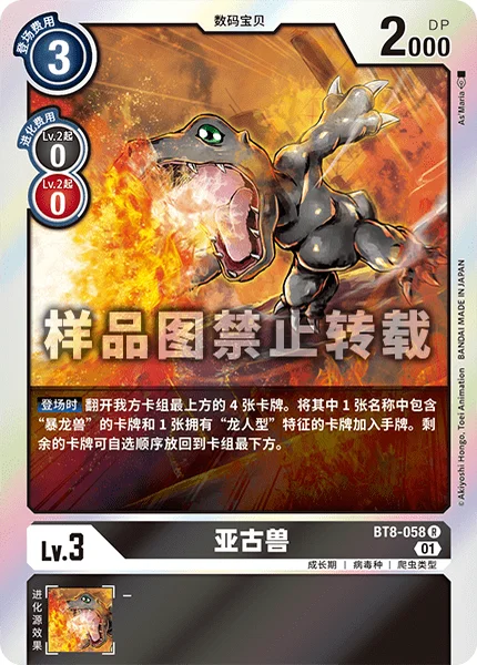 On Play Reveal the top 4 cards of your deck. Add 1 card with [Greymon] in its name and 1 card with [Dragonkin] in its traits among them to your hand. Place the remaining cards at the bottom of your deck in any order.