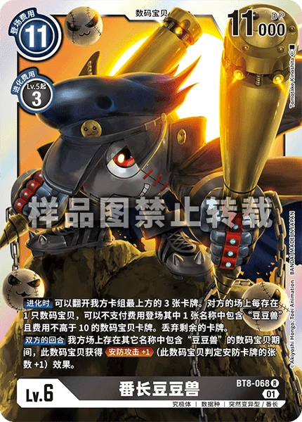 When Digivolving You may reveal the top 3 cards of your deck. For each of your opponent's Digimon, you may play 1 Digimon card with [Mamemon] in its name and a memory cost of 10 or less among the revealed cards without paying its memory cost. Trash the remaining cards.All Turns While you have another Digimon with [Mamemon] in its name in play, this Digimon gains Security Attack +1. (This Digimon checks 1 additional security card.)
