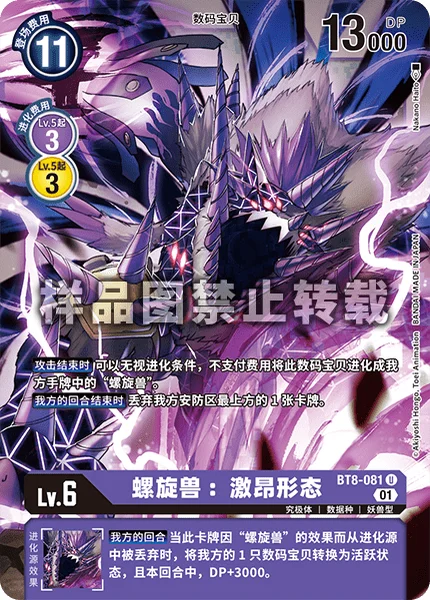 Your Turn When this card is trashed as a digivolution card by [Rasenmon]'s effect, unsuspend 1 of your Digimon and it gets +3000 DP for the turn.