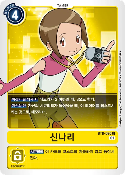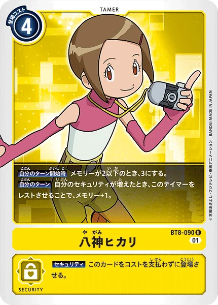 Start of Your Turn If you have 2 memory or less, set your memory to 3.Your Turn When a card is added to your security stack, you may suspend this Tamer to gain 1 memory.