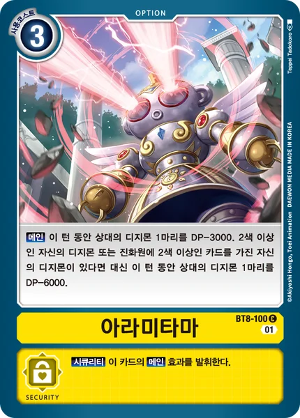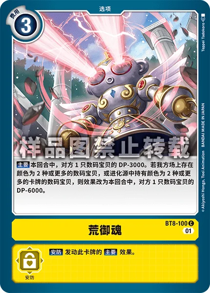 Main 1 of your opponent's Digimon gets -3000 DP for the turn. If you have a Digimon in play with 2 or more colors, or with 2 or more colors in one of its digivolution cards, 1 of your opponent's Digimon gets -6000 DP instead.