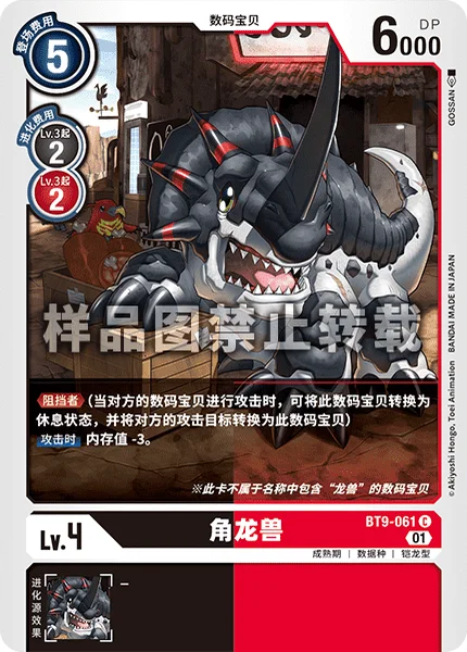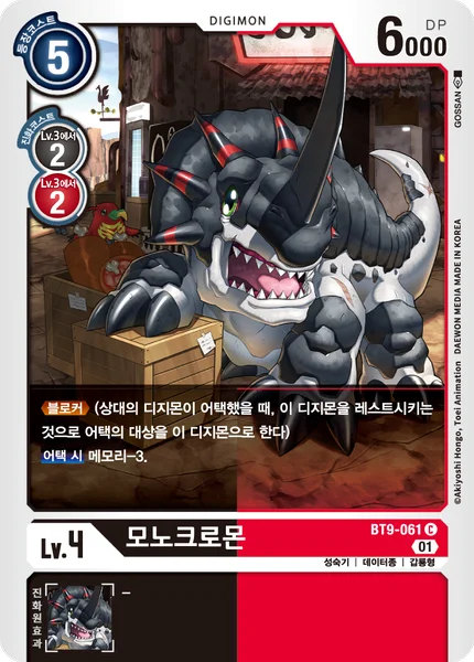 Blocker (When an opponent's Digimon attacks, you may suspend this Digimon to force the opponent to attack it instead.)When Attacking Lose 3 memory.