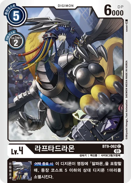 End of Attack If this Digimon has [Alphamon] in its name, delete 1 of your opponent's Digimon with a play cost of 5 or less.