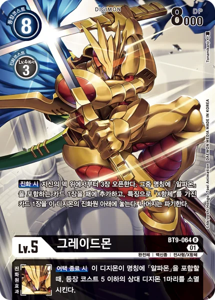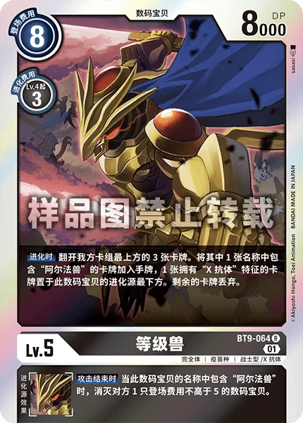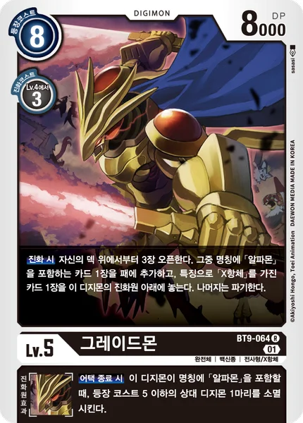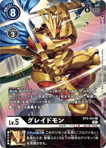 When Digivolving Reveal the top 3 cards of your deck. Add 1 card with [Alphamon] in its name among them to your hand, and place 1 card with [X Antibody] in its traits among them under this Digimon as its bottom digivolution card. Trash the rest.