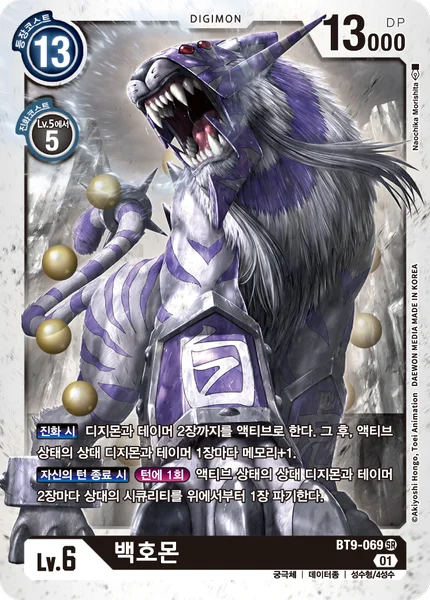 When Digivolving Unsuspend up to 2 Digimon and/or Tamers. Then, gain 1 memory for each of your opponent's unsuspended Digimon and Tamers. End of Your TurnOnce Per Turn For every 2 unsuspended Digimon and/or Tamers your opponent has in play, trash 1 card from the top of your opponent's security stack.