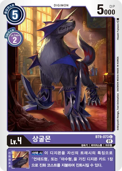 When Attacking This Digimon may digivolve into a Digimon card with [Undead] or [Dark Animal] in its traits from your trash for its digivolution cost.