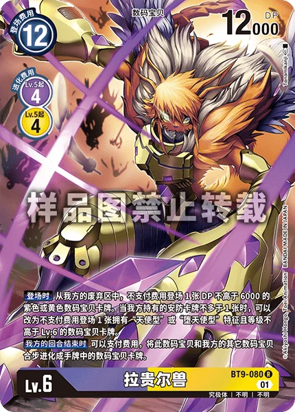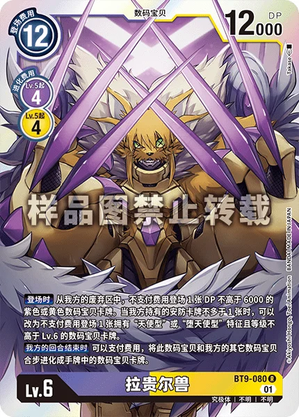On Play Play 1 purple or yellow Digimon card with 6000 DP or less from your trash without paying its memory cost. If you have 1 or fewer security cards, you may play 1 level 6 or lower Digimon card with [Angel] or [Fallen Angel] in its traits from your trash without paying its memory cost instead. End of Your Turn You may DNA digivolve this Digimon and one of your other Digimon in play into a Digimon card in your hand for its DNA digivolve cost.