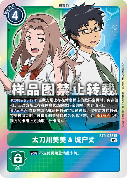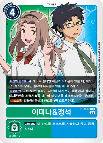 Start of Your Turn If you have a suspended Digimon in play, gain 1 memory. If your opponent has a suspended Digimon in play, gain 1 memory. All Turns When one of your green or blue Digimon deletes an opponent's Digimon in battle and survives, you may suspend this Tamer to Draw 1. (Draw 1 card from your deck.)