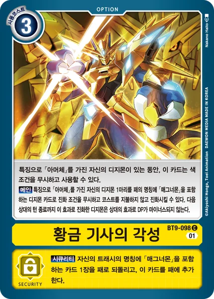 Security Return 1 card with [Magnamon] in its name from your trash to your hand, and add this card to your hand.