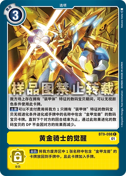 While you have a Digimon with [Armor Form] in its traits in play, you may use this card without meeting its color requirements. Main You may digivolve 1 of your Digimon with [Armor Form] in its traits into a Digimon card with [Magnamon] in its name in your hand, ignoring its digivolution requirements and without paying its memory cost. The Digimon that digivolved with this effect can't have its DP reduced by your opponent's effects until the end of your opponent's turn.