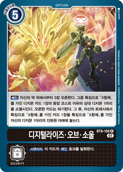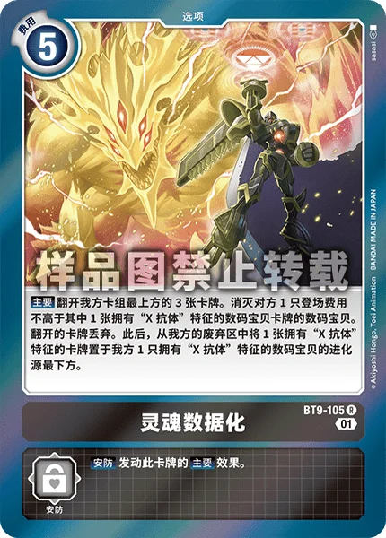 Main Reveal the top 3 cards of your deck. Choose 1 Digimon card with [X Antibody] in its traits among them, and delete 1 of your opponent's Digimon whose play cost is less than or equal to the chosen card's play cost. Trash the revealed cards. Then, place 1 card with [X Antibody] in its traits from your trash under 1 of your Digimon with [X Antibody] in its traits as its bottom digivolution card.