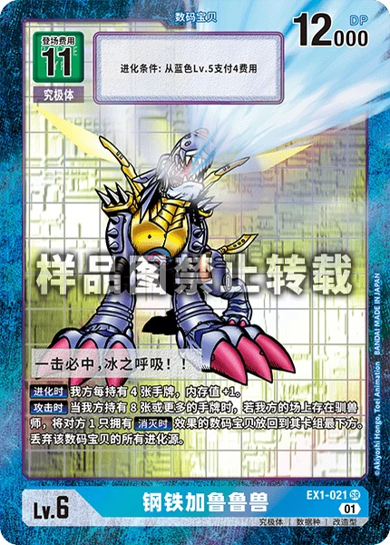 When Digivolving Gain 1 memory for every 4 cards in your hand. When Attacking If you have 8 or more cards in your hand and a Tamer in play, return 1 of your opponent's Digimon with an On Deletion effect to the bottom of its owner's deck. Trash all of the digivolution cards of that Digimon.