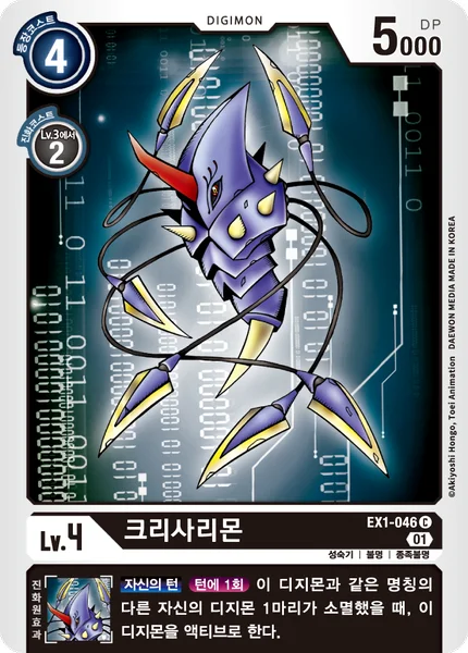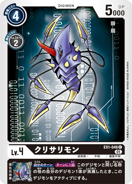 Your TurnOnce Per Turn When one of your other Digimon with the same name as this Digimon is deleted, unsuspend this Digimon.