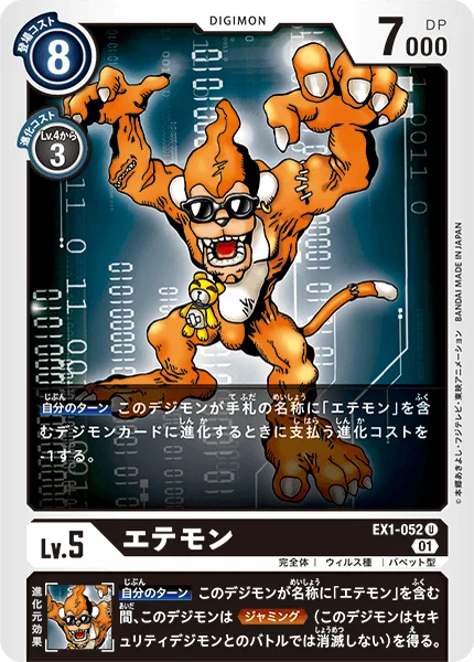 Your Turn While this Digimon has [Etemon] in its name, it gains Jamming. (This Digimon can't be deleted in battles against Security Digimon.)