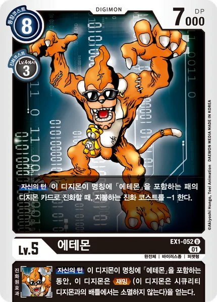 Your Turn When this Digimon digivolves into a Digimon card with [Etemon] in its name in your hand, reduce the memory cost of the digivolution by 1.