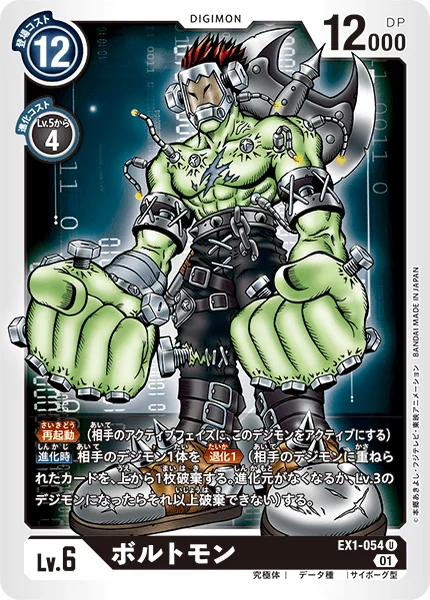 Reboot (Unsuspend this Digimon during your opponent's unsuspend phase.)When Digivolving De-Digivolve 1 1 of your opponent's Digimon. (Trash 1 card from the top of one of your opponent's Digimon. If it has no digivolution cards, or becomes a level 3 Digimon, you can't trash any more cards.)