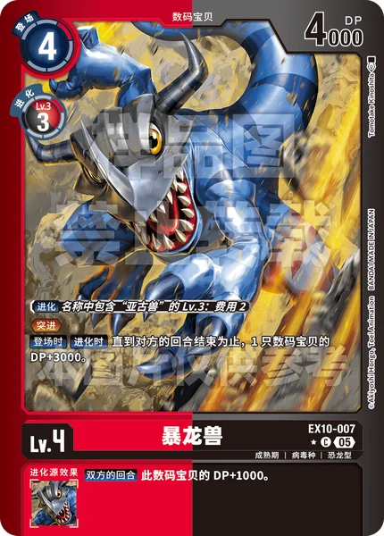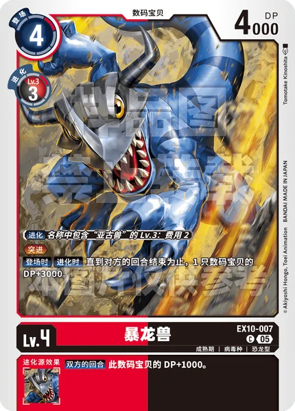 In turn, this causes the [All Turns] effect on your opponent's EX10-010 [BlackWarGreymon ACE] to activate, it can no longer be affected by the +3000 DP from this card's effect, and this [All Turns] effect will give it +3000 DP.