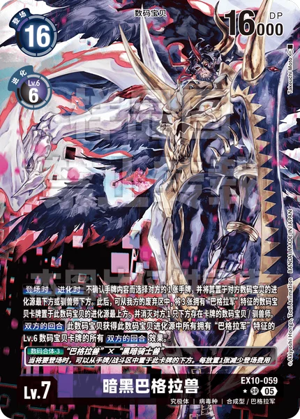 All Turns This Digimon gains all All Turns effects on all level 6 [Bagra Army] trait Digimon cards in its digivolution cards.